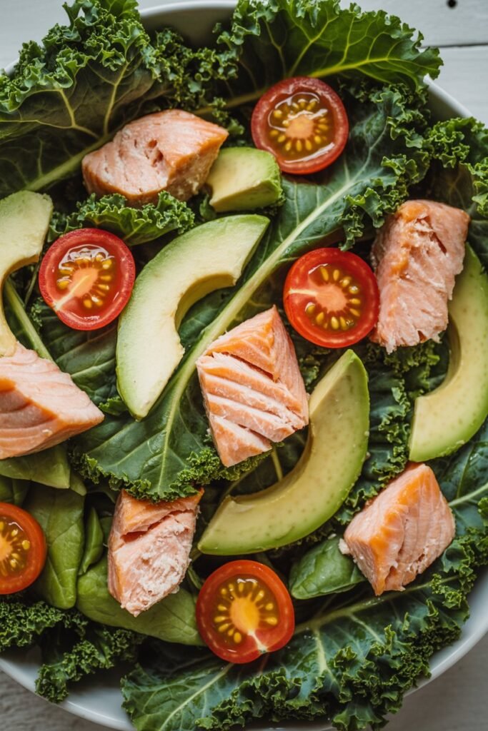 The omega-3 fats in salmon keep me full, and the kale adds fiber and antioxidants.