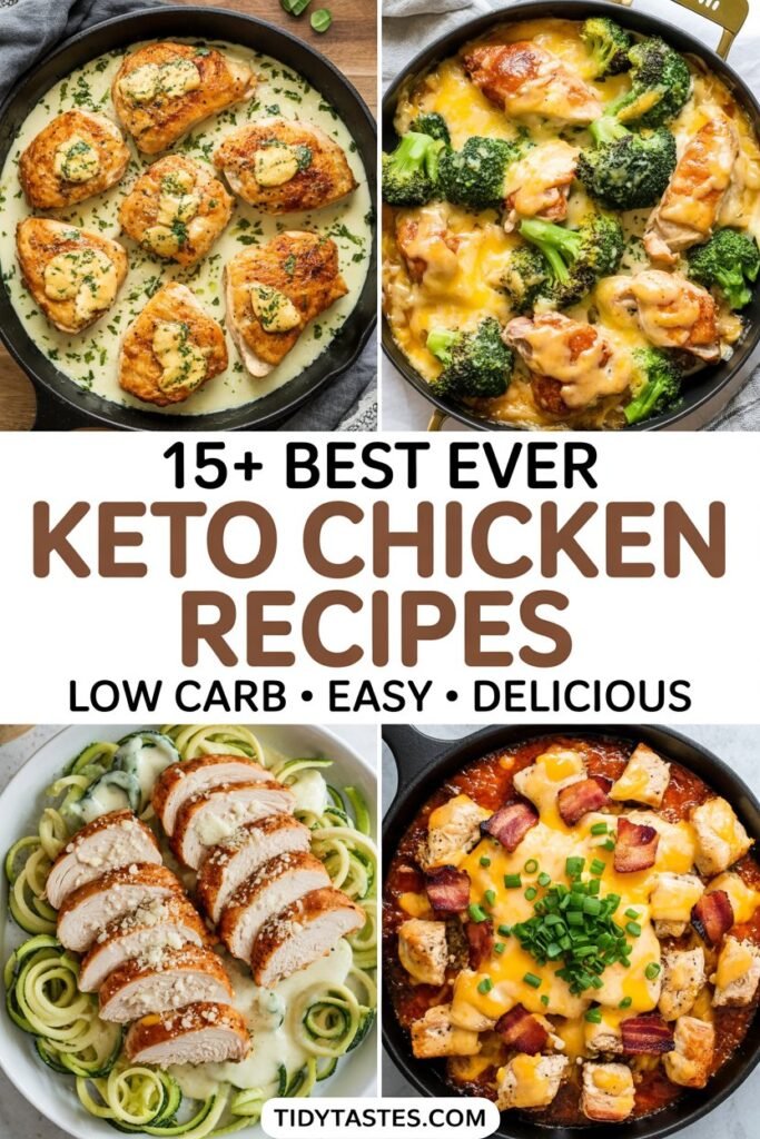 These keto chicken recipes offer a variety of options ranging from creamy comfort food to lighter dishes that are perfect for quick dinners or meal prep.