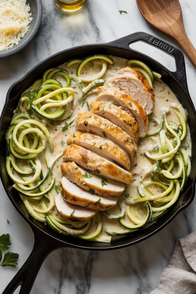 Instead of serving it with traditional pasta, I like pairing the creamy sauce with zucchini noodles or roasted vegetables.