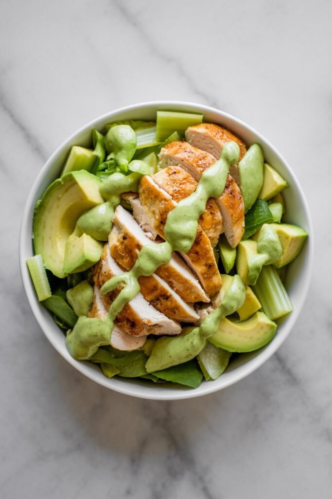 Fresh herbs, avocado slices, or a squeeze of lemon juice can instantly brighten the flavor of a keto chicken meal.