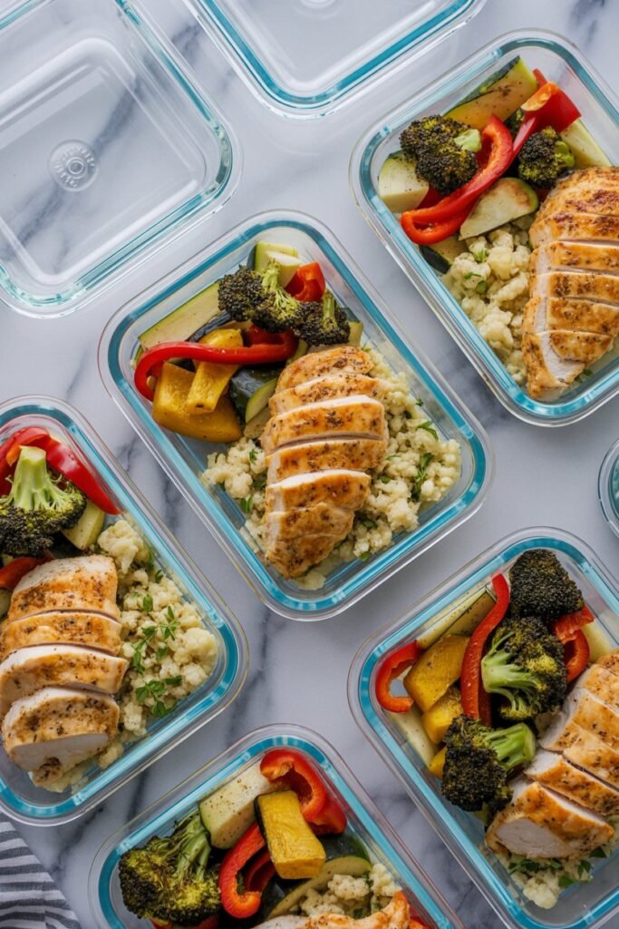 You can also change how you serve the same chicken during the week. For example, grilled chicken can be sliced for salads one day and added to a cauliflower rice bowl the next.