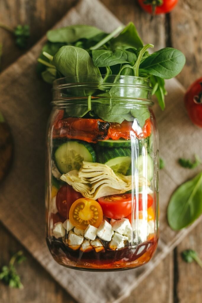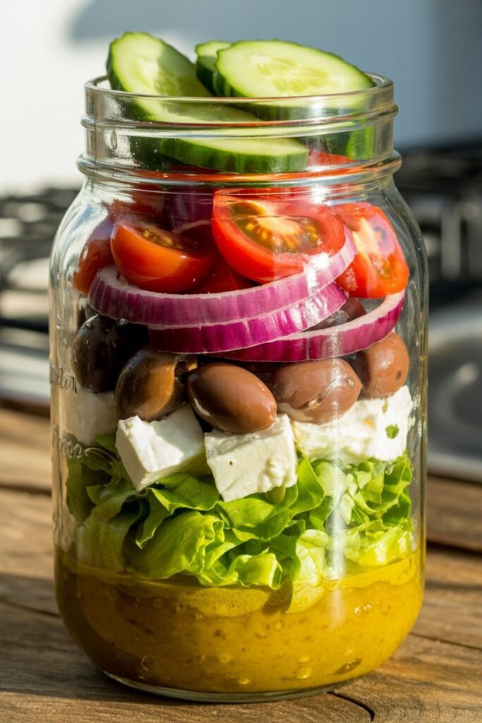 1. Classic Greek Mason Jar Salad