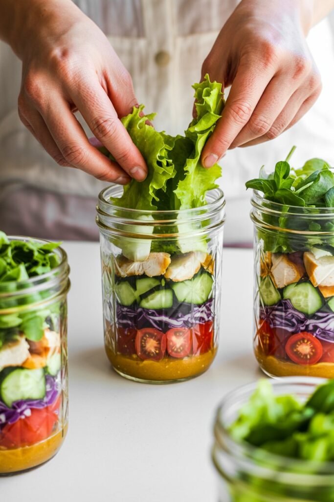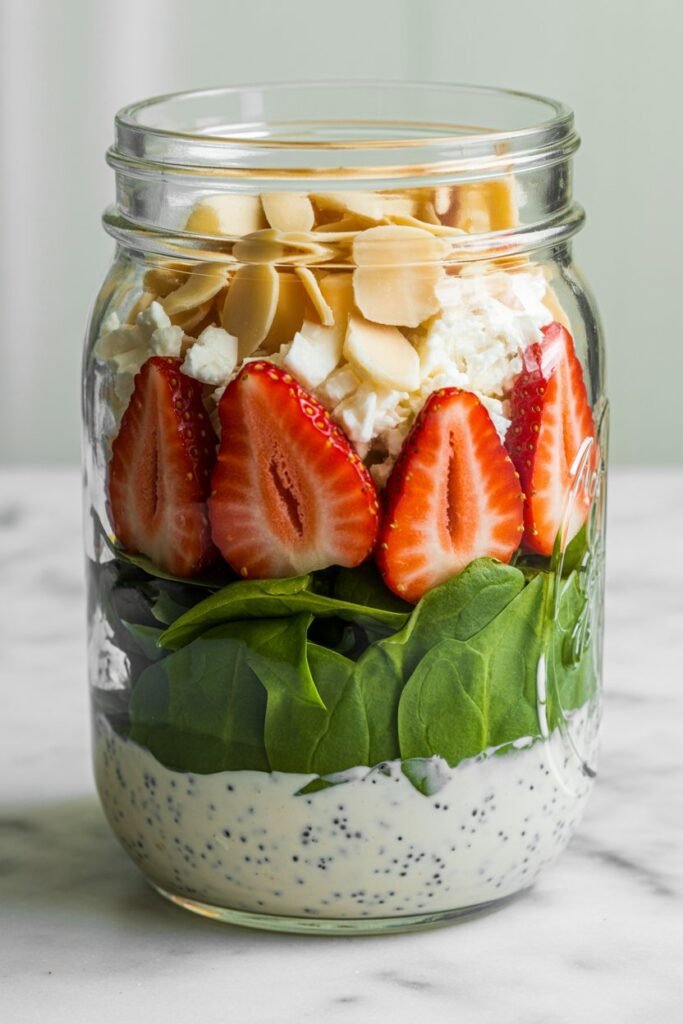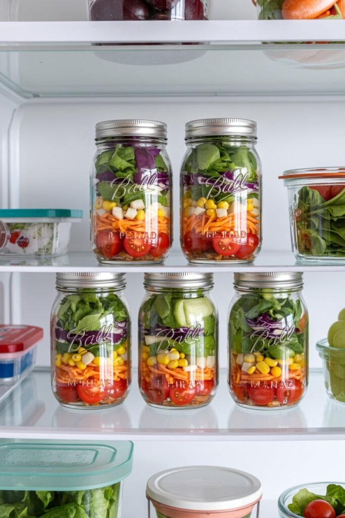 Prep 4–5 jars at once, stack in the fridge, and your salads stay fresh for days.