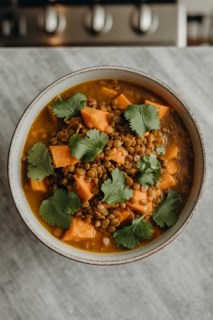 Sweet potatoes add natural sweetness while lentils make it hearty.