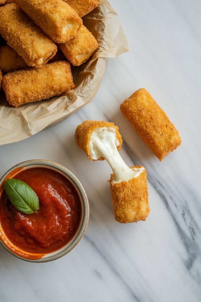 Crispy on the outside, gooey on the inside, these mozzarella sticks are perfect for parties, snacks, or an indulgent treat without deep-frying.