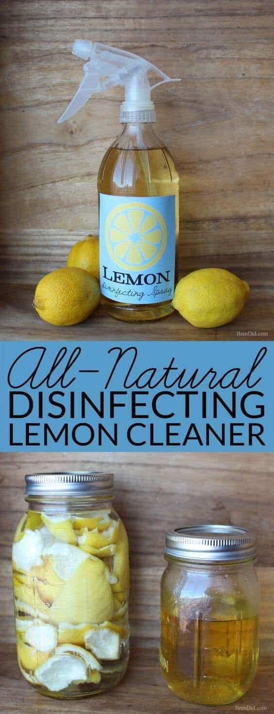 - 2. The cleaner is ready when it becomes a deep yellow color. Remove the lemon rinds and pour into a spray bottle.