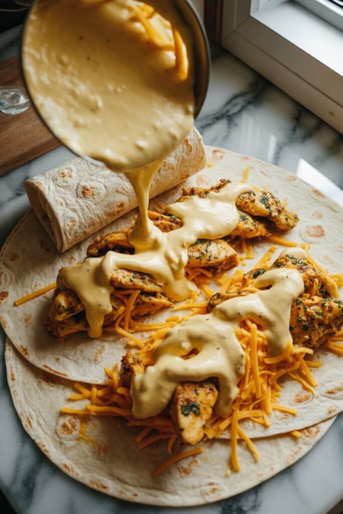 Spoon a generous amount of the creamy garlic cheese sauce over the chicken, letting it melt into every nook and cranny. Sprinkle shredded cheddar and mozzarella on top for that irresistible gooey layer.