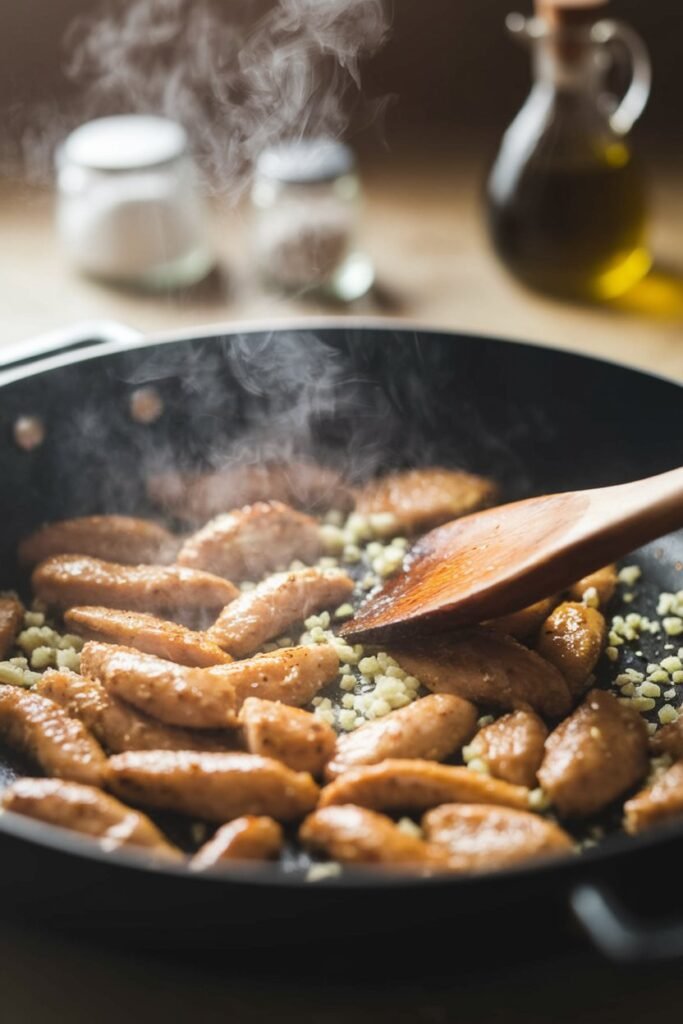 Toss in the minced garlic and let it cook just until fragrant, about a minute. Be careful not to let it burn—this little step adds a rich, garlicky depth that makes the chicken irresistible.
