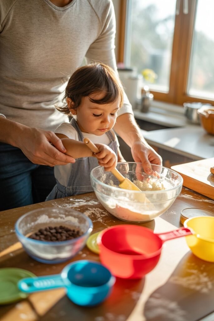 - Let them help with small, safe tasks like stirring, pouring, or adding toppings