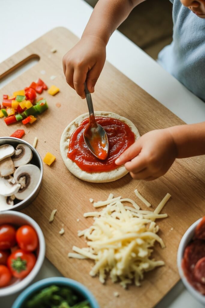 Kids can spread sauce, sprinkle cheese, and arrange colorful vegetables however they like, which makes them more excited to eat what they created.