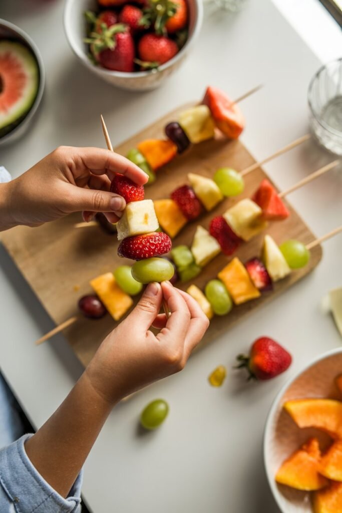 Pro Tip: Use fruits of various colors and textures to make the kabobs more fun and engaging for kids.