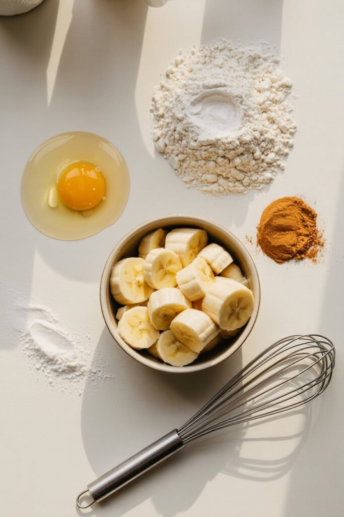 Mash the banana in a bowl until smooth. Whisk in the egg until fully combined, then add flour, baking powder, and cinnamon.