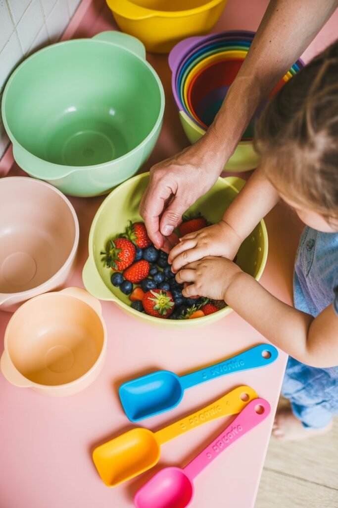 Keep tools kid-friendly. Use child-safe knives, small mixing bowls, and silicone spatulas. Having colorful utensils or fun measuring cups also makes the activity more engaging.
