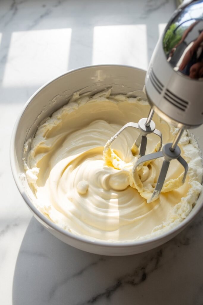 You’ll notice as you whip it, the texture starts to change—it gets light and soft, almost like whipped frosting, and that’s exactly what I’m looking for. I always think of this moment as setting the stage: if the base is perfect, everything else will taste better.
