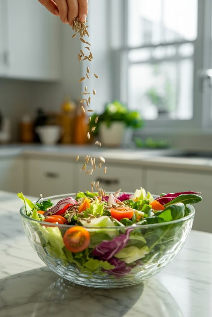 Sprinkle sunflower seeds or pumpkin seeds over the salad.
