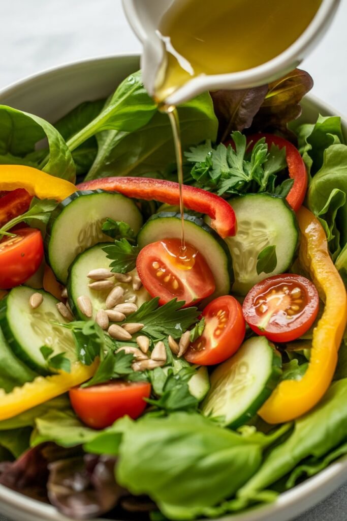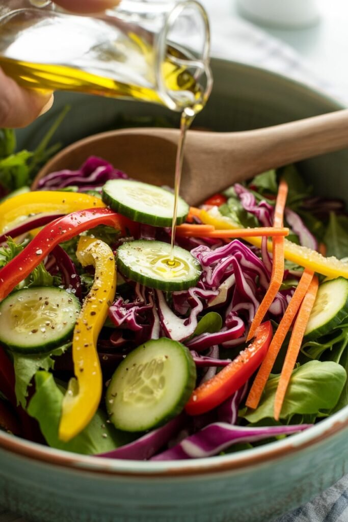 - Dressings – Try different combinations like balsamic vinegar with olive oil, lemon-tahini, or apple cider vinaigrette. Changing the dressing keeps the salad feeling fresh.
