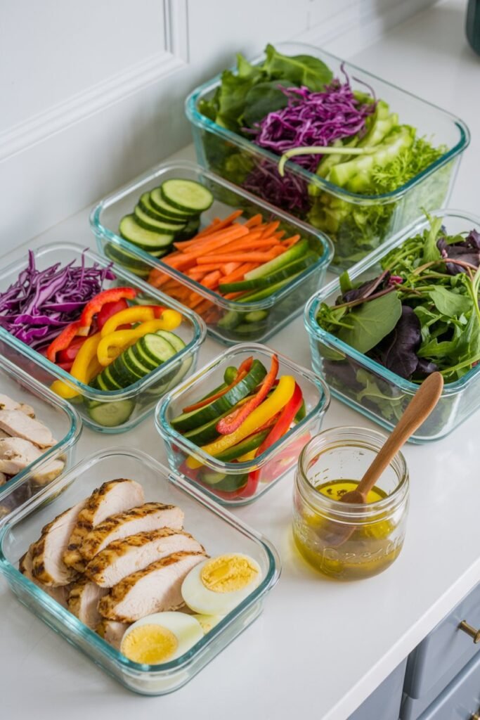 Meal prepping like this saves time, keeps salads fresh, and makes it easier to stay consistent with weight loss goals.