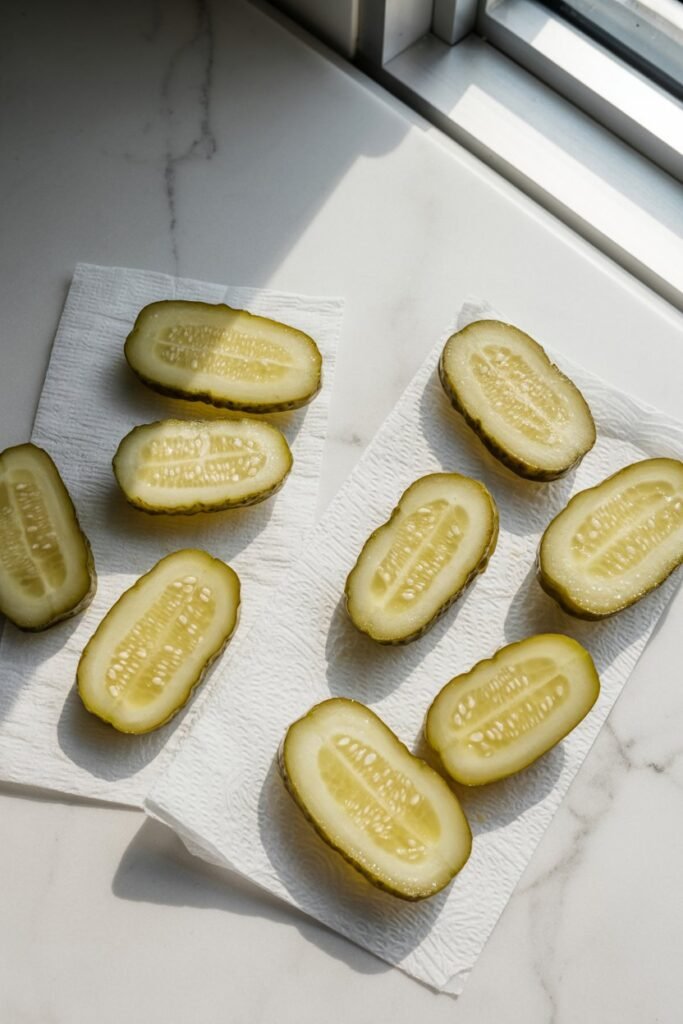 This step is easy to overlook, but it makes a huge difference. If the pickles are too wet, the coating won’t stick properly.
