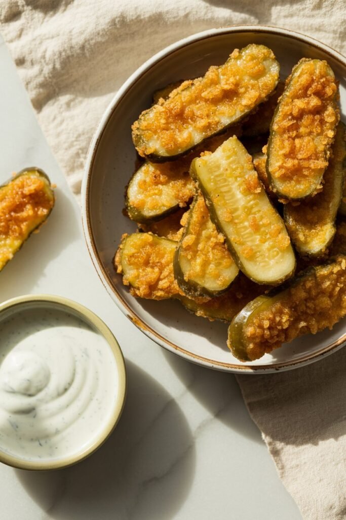 That crispy coating, the tangy bite from the pickles, and that perfect dip into a creamy sauce… it’s one of those snacks you just keep reaching for without even thinking.