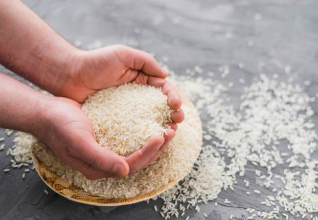 - Rinse ½ cup of white or brown rice to remove dirt