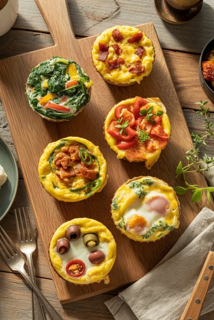 Veggie Egg Cups – Sometimes I like to sneak in extra veggies. I’ll sauté spinach, bell peppers, mushrooms, or onions and fold them into the egg mixture. You’ll get that extra color, flavor, and nutrients without feeling like you’re missing out on the savory goodness.