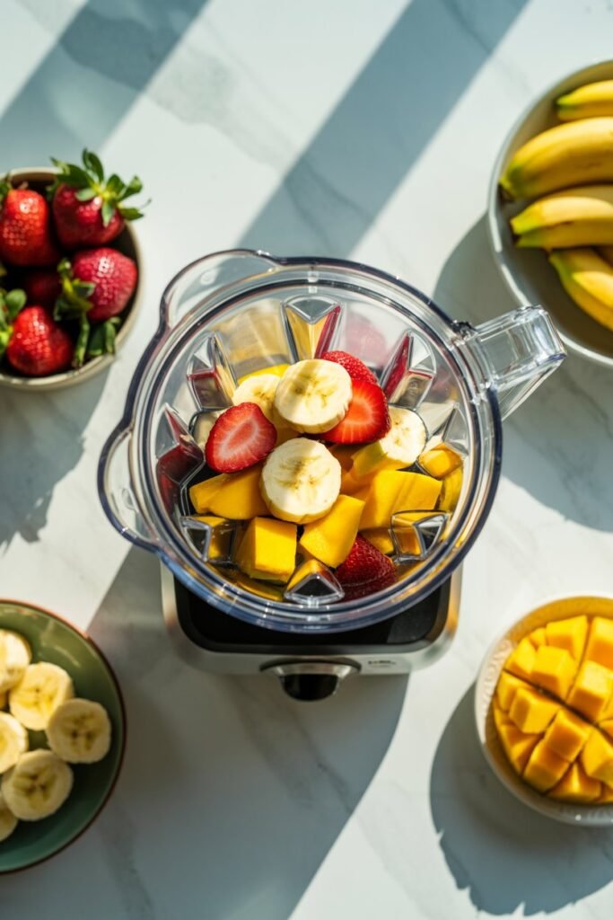 Bananas, strawberries, mangoes, and blueberries are great options because they naturally add sweetness and create a smooth, creamy texture.