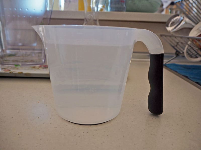 2. 1 litre/4 cups of water in measuring jug