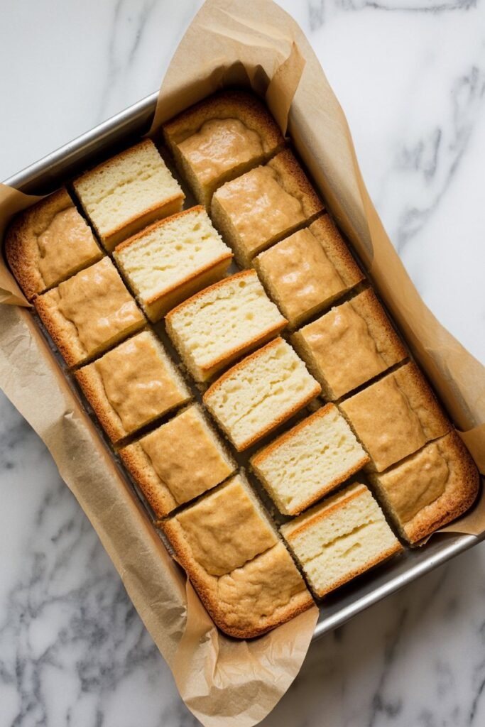 Allow the cake to cool completely before slicing into small squares or strips.