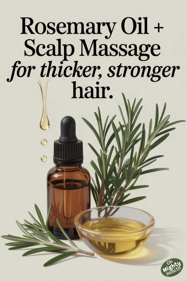 What it does: Rosemary oil has been shown in studies to be as effective as minoxidil (Rogaine) for hair growth. It works by improving circulation and possibly blocking DHT, a hormone linked to hair thinning.