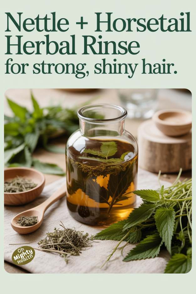 - Steep 2 tablespoons of dried nettle and 1 tablespoon of horsetail in 2 cups of boiling water.