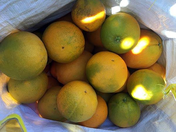 Last year and the year before the oranges were a bit sour (sorry brother, I know how hard you work on the land but they were not as good as this year). Oh, yes, this year they’re wonderfully sweet and lovely and packed – I mean PACKED with juice. Out of this world!