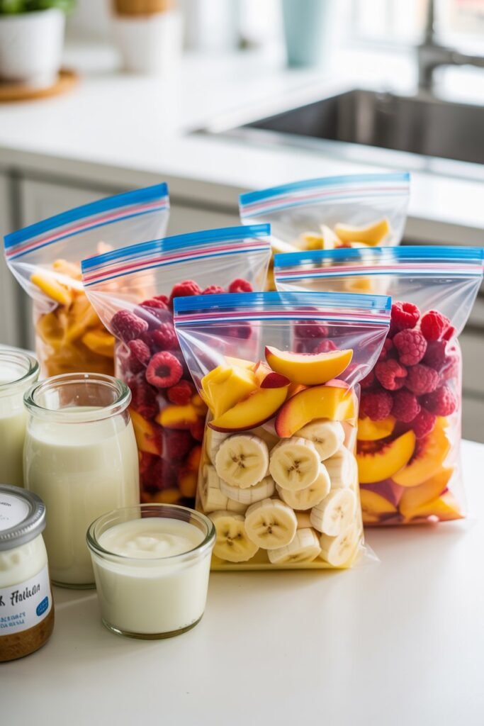 When I’m ready to make a smoothie, I simply grab one portion, add yogurt and milk, and blend.