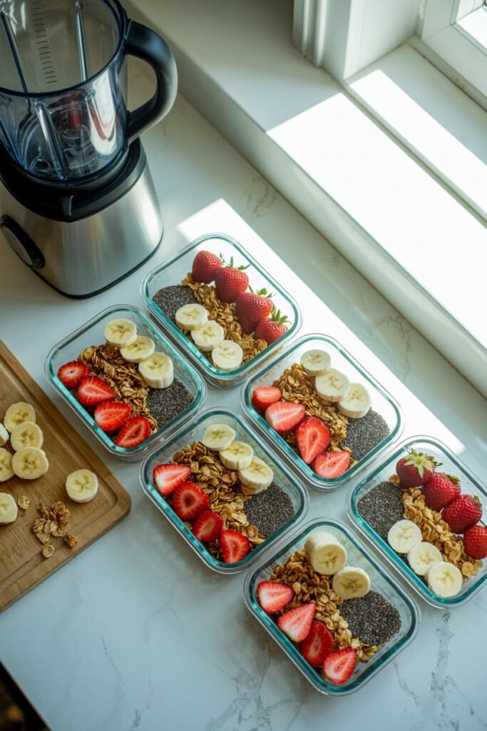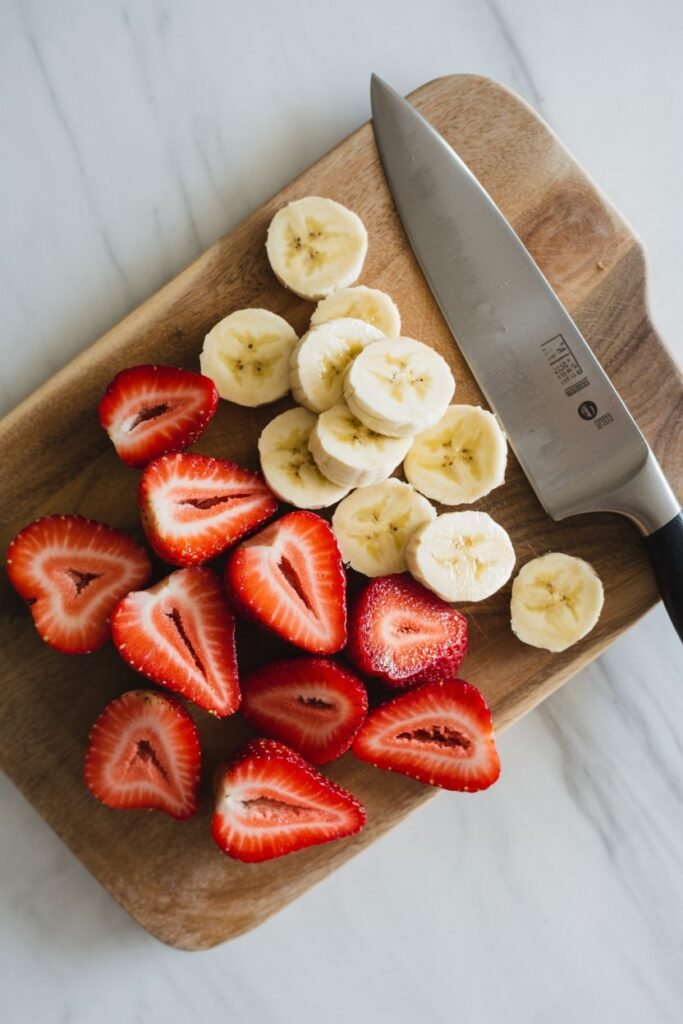 This saves time and keeps the fruit fresh. You can also pre-slice toppings like strawberries or portion granola into small containers so assembling the bowl is quick and stress-free.