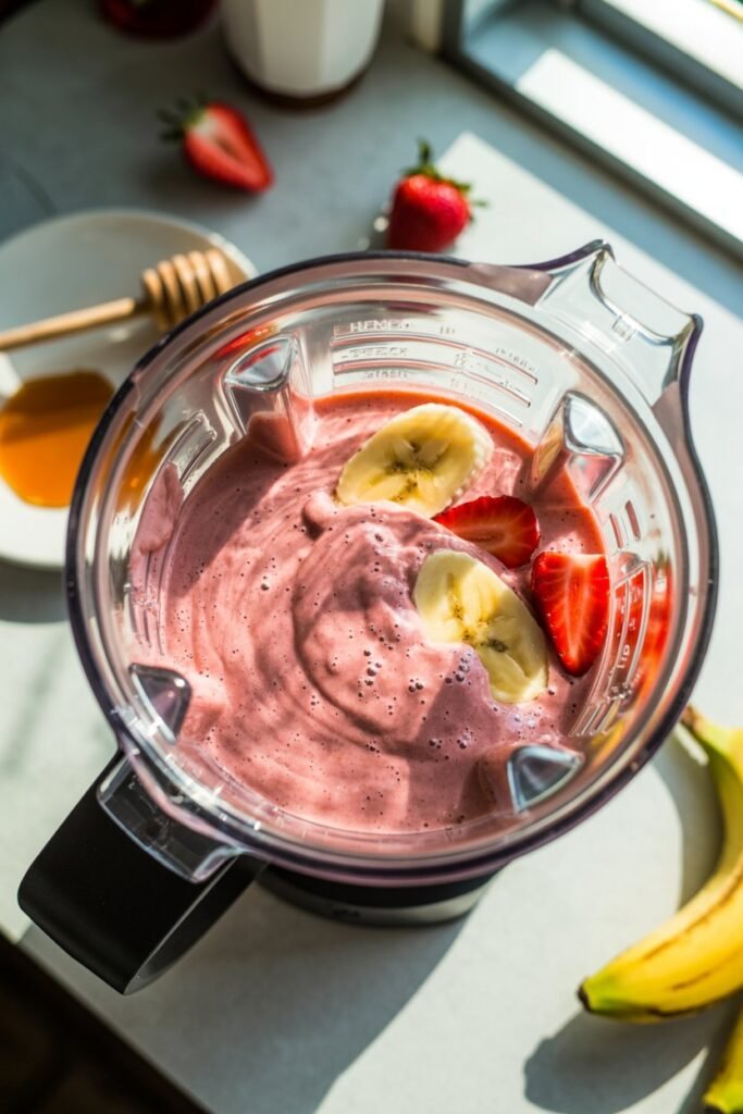 The combination of sweet strawberries and creamy banana creates a smooth, thick texture that feels like a treat but is packed with real, wholesome ingredients.