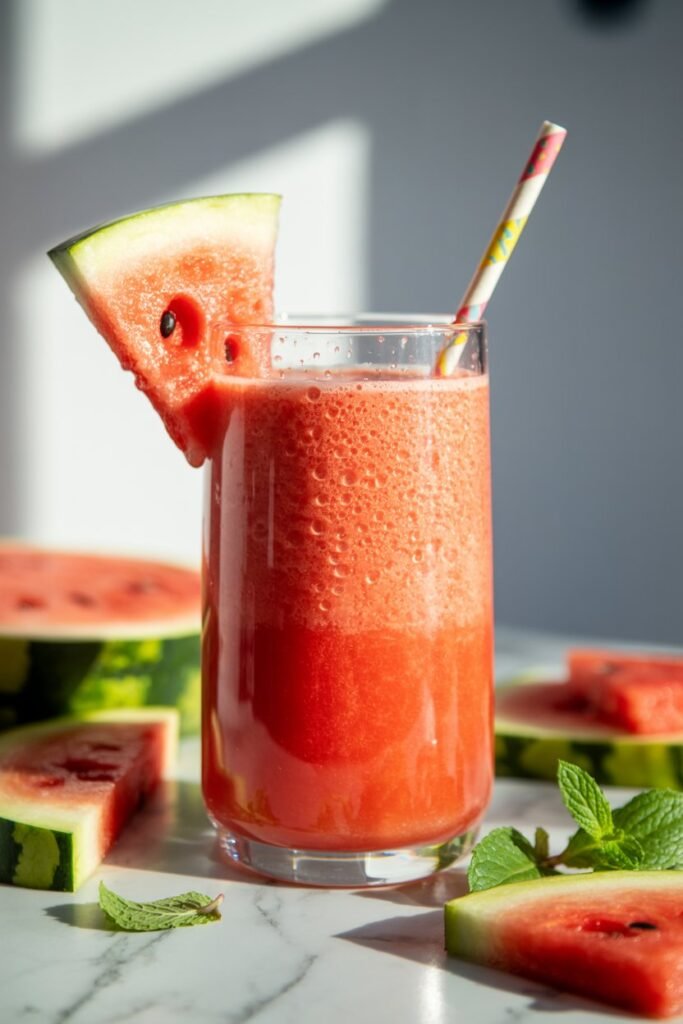 Watermelon is over 90 percent water, so blending it creates a drink that feels like eating a bowl of sweet, juicy fruit. It keeps you refreshed and replenished, especially on warm days.
