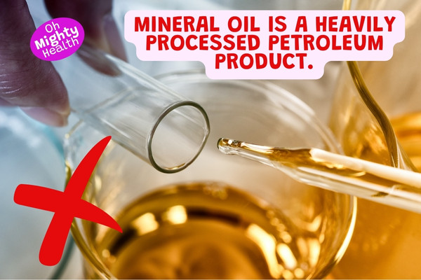 Mineral oil sits on top of your skin, potentially trapping other ingredients underneath and it can sometimes lead to clogged pores or irritation for sensitive skin.
